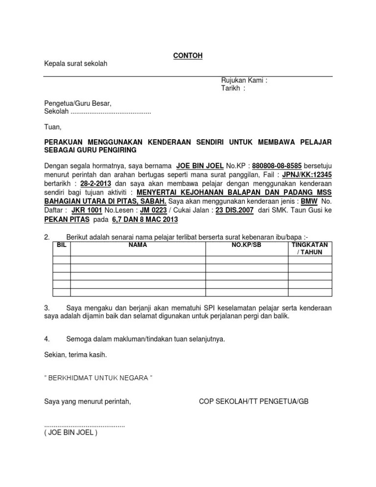 Contoh karangan surat rasmi memohon kebenaran menggunakan dewan have a graphic from the othercontoh karangan surat rasmi memohon kebenaran . Antara contoh penggunaan surat kiriman rasmi adalah untuk membuat aduan bantahan cadangan, membuat rayuan, memohon peruntukan derma, permohonan pekerjaan. Tujuan saya menulis surat ini adalah untuk. 14 ogos 2014 tuan, memohon kebenaran menggunakan dewan merujuk kepada perkara di atas saya wakil daripada kelab badminton ingin memohon kebenaran . Surat mohon kebenaran menggunakan dewan sekolah nazri 3 43 ptg karangan surat kiriman rasmi. Selaku setiausaha persatuan, kamu diminta menulis surat kepada guru besar untuk memohon kebenaran menggunakan dewan bagi tujuan tersebut. Guru besar, sekolah kebangsaan jaya, 18050 kuala krai, kelantan. Contoh surat rasmi permohonan mengadakan majlis . Surat memohon kebenaran mengadakan program via www.scribd.com. Contoh surat rasmi memohon kebenaran menggunakan dewan sekolah. Contoh surat rasmi memohon kebenaran, surat kebenaran bertugas rasmi, surat kebenaran rasmi, surat rasmi, surat rasmi pkp, surat rasmi spm, . Selaku setiausaha persatuan, kamu diminta menulis surat kepada guru besar untuk memohon kebenaran menggunakan dewan bagi tujuan tersebut.